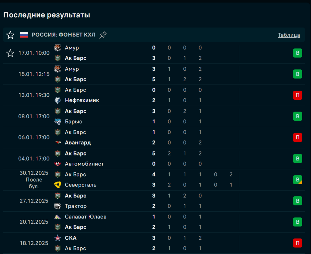 Последние игры Ак Барс Казань