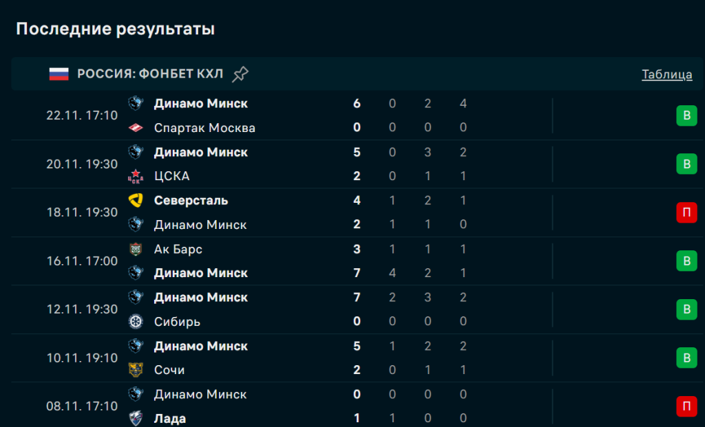 Последние игры команды Динамо Минск