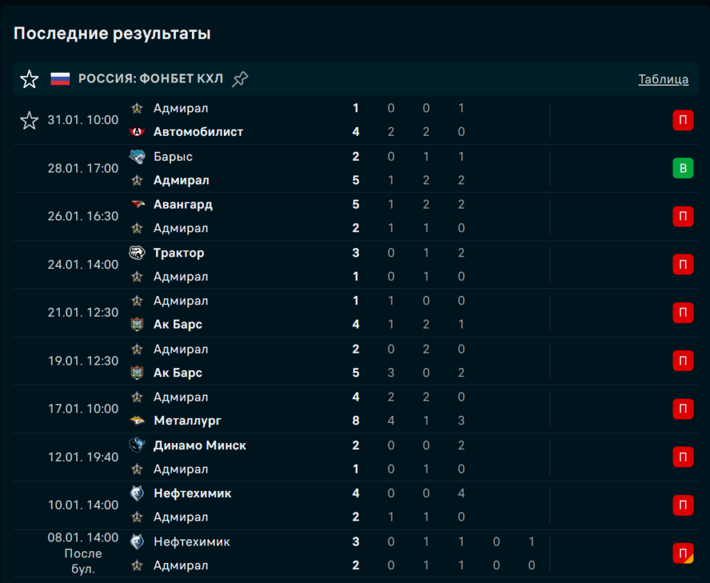 Свежий микроотрезок за «Адмиралом», но с оговорками: одна победа по буллитам 2 : 1, другая — старой датой и на фоне другого качества «Торпедо». В остальном очные чаще решались за счёт клина в центре и бросков гостей из полупространств. Для хозяев проблема не столько в «истории», сколько в текущем разрыве по игре.