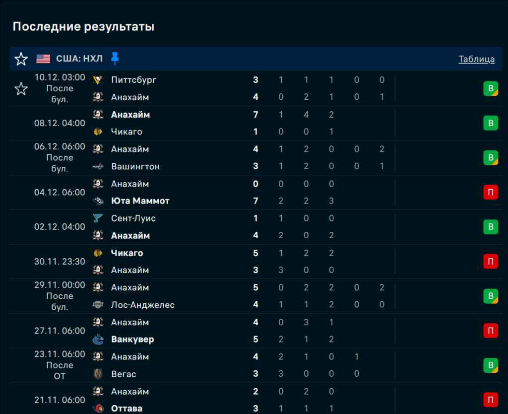 Последние игры Анахайм