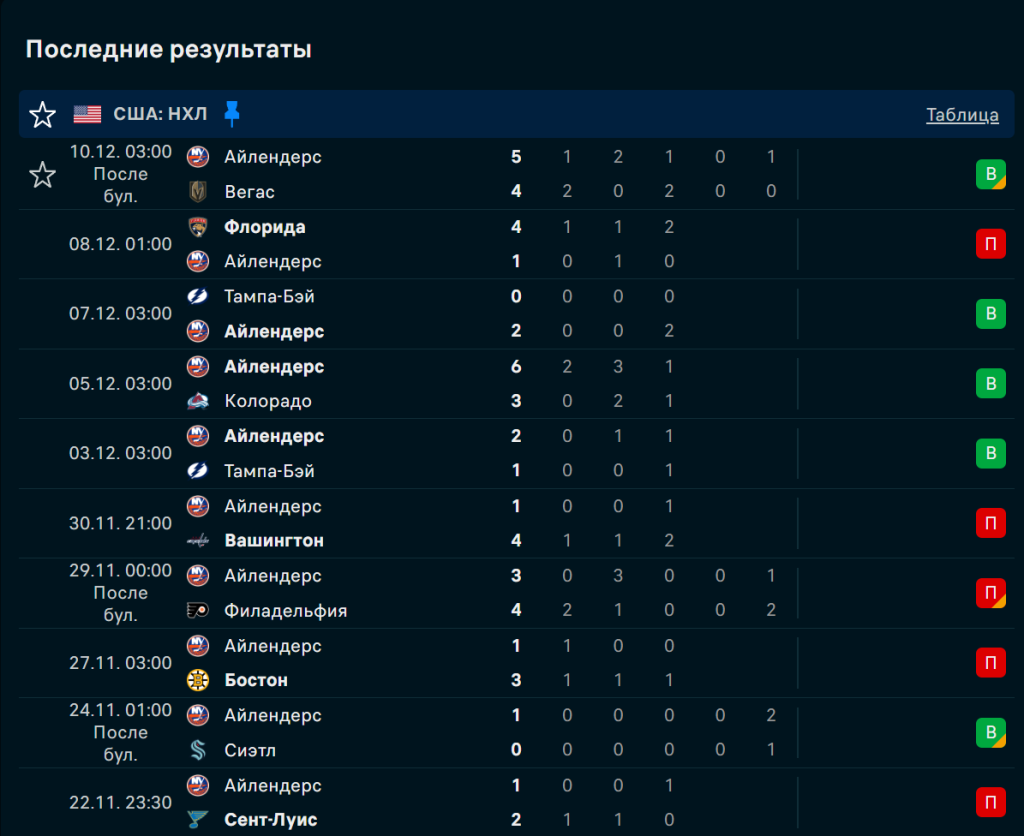 Последние игры Айлендерс