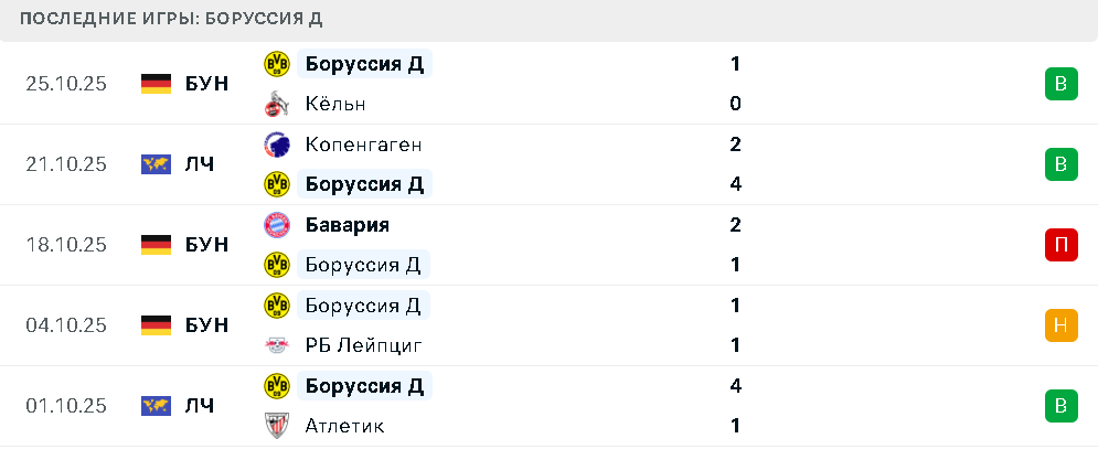 - Боруссия Дортмунд потерпела только одно поражение в 12 последних матчах