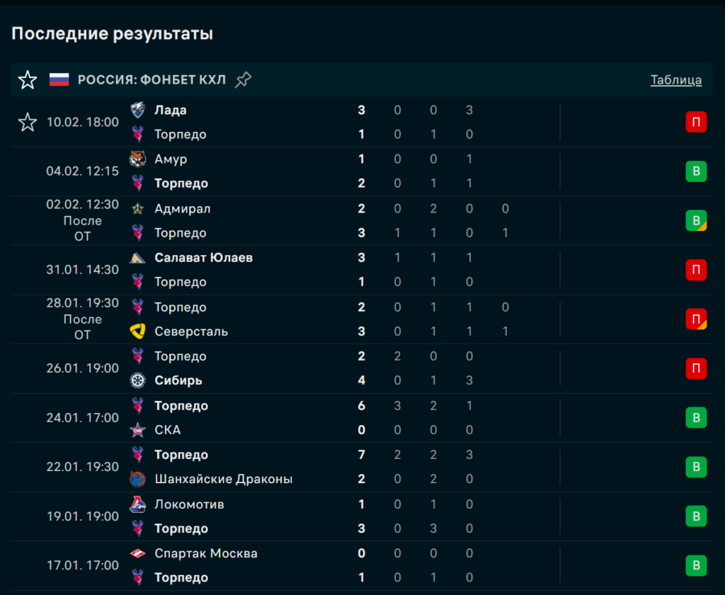 Последние игры Торпедо