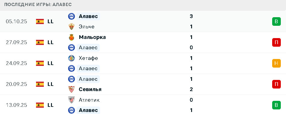 Всего в одном из пяти предыдущих матчей соперники расходились миром. Во всех остальных случаях победу одерживал Алавес.