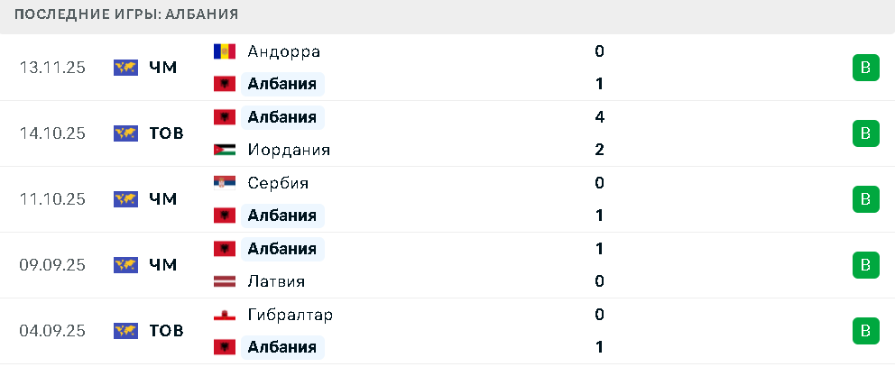 - Сборная Албании не проигрывает в последних 8 матчах.