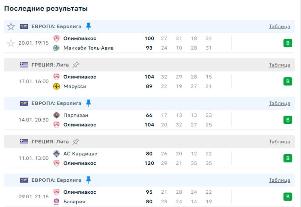 Последние игры Олимпиакоса