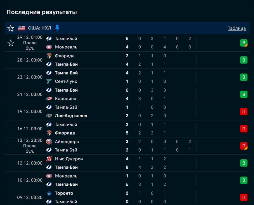 - Тампа участвует в ТБ(5,5) в 4 из 5 последних матчей