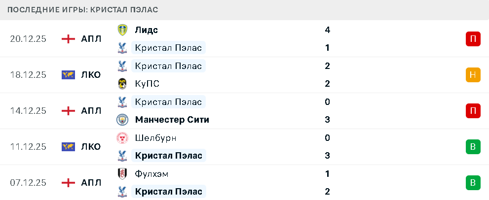 - «Кристал Пэлас» в пяти последних матчах пропускает в среднем по 2 гола за игру