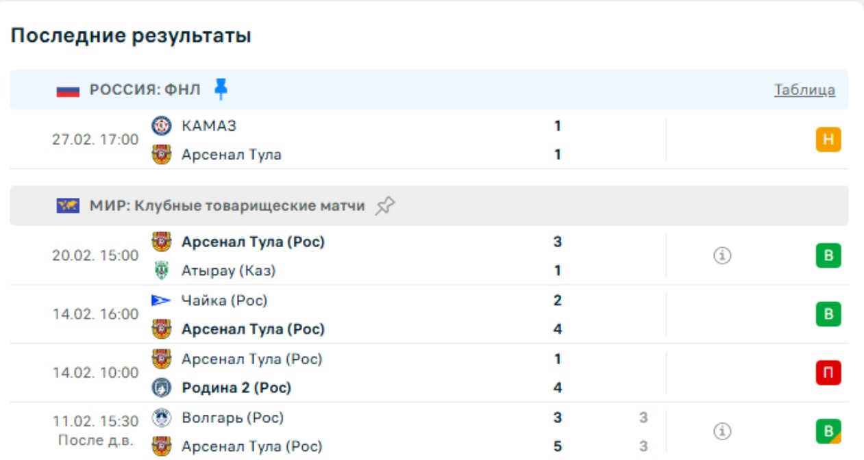 В первом матче после зимнего перерыва «Арсенал» сыграл на выезде вничью с КАМАЗом 1:1. Туляки вели в счете после первого тайма, но упустили победу в концовке. В турнирной таблице ФНЛ «Арсенал» занимает 10-е место. Но побороться за зону стыков и выход в РПЛ вполне реально, отставание от четвертой строчки — шесть очков.