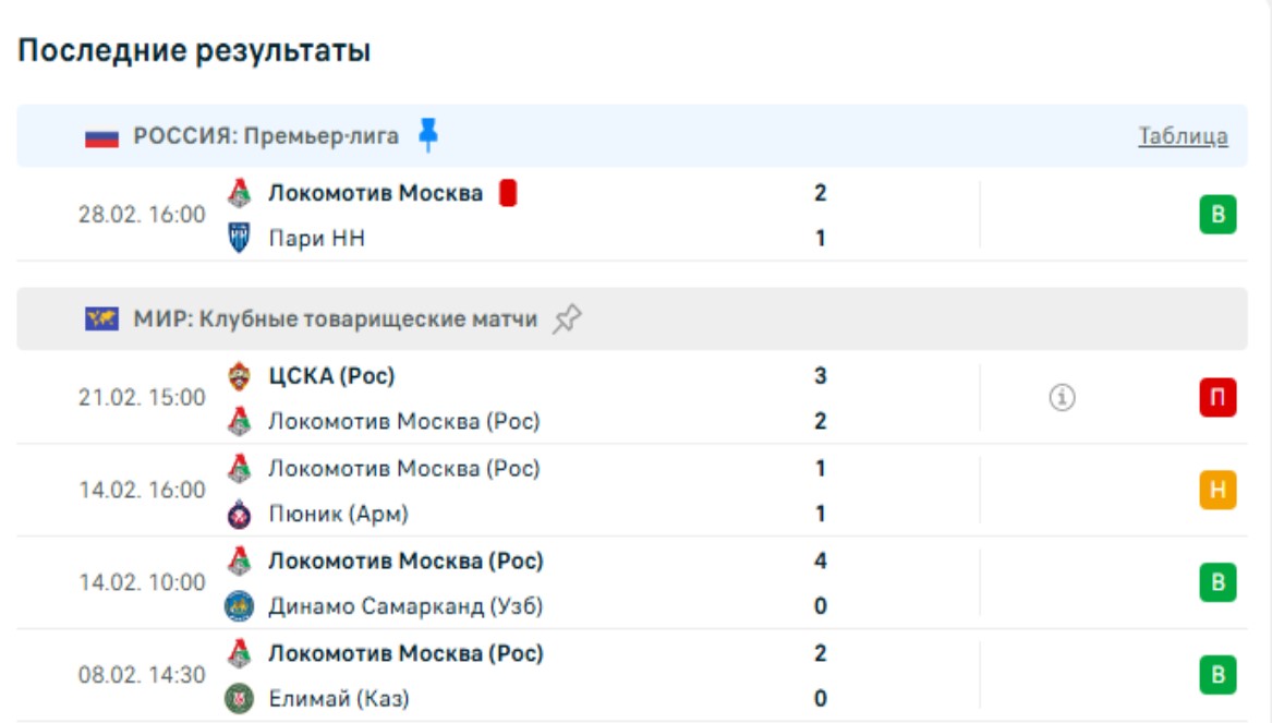 Последние игры Локомотива
