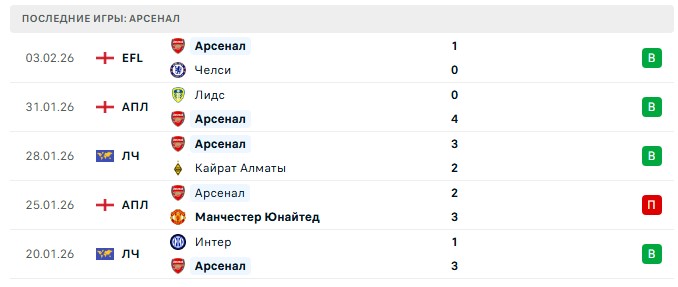 Последние игры Арсенал