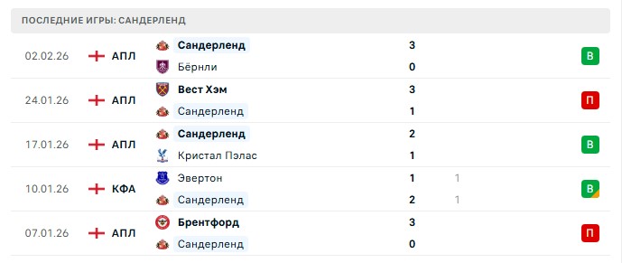 Последние игры Сандерленд