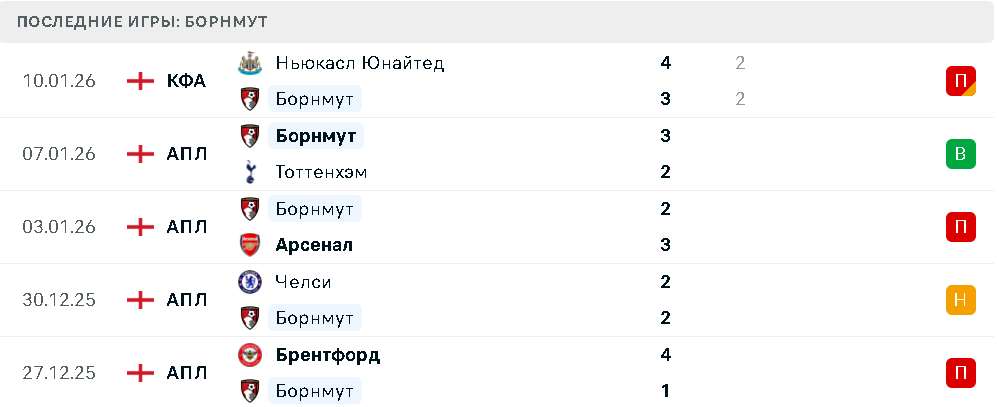 Последние игры Борнмута