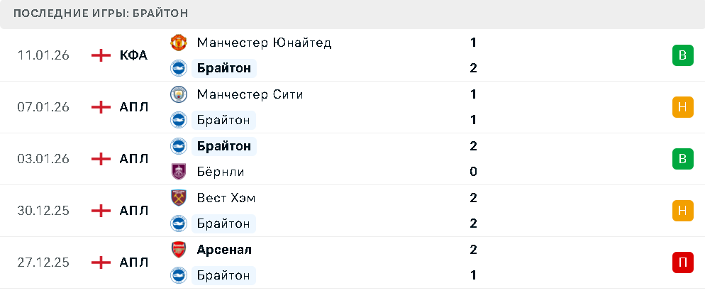 Последние игры Брайтона