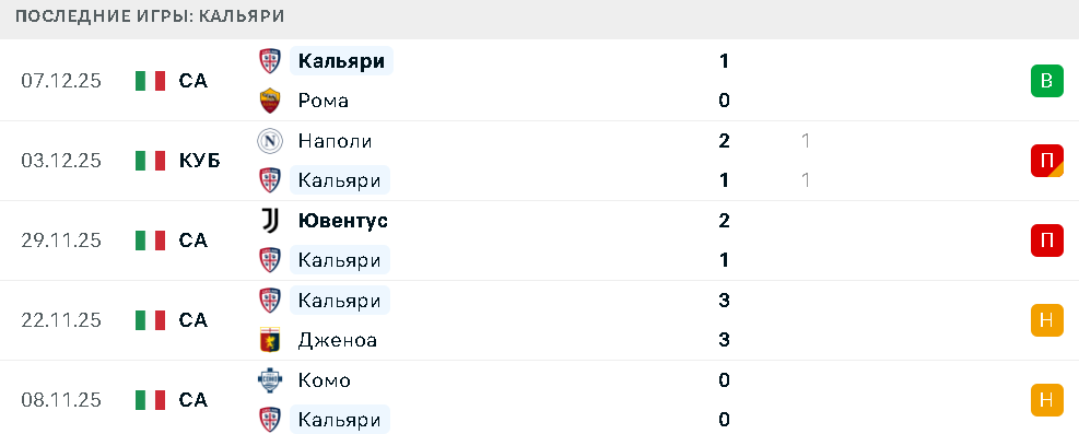 Победа над «Ромой» в предыдущем туре стала для команды единственной в пяти последних матчах. Но и проиграли «островитяне» только «Ювентусу». В остальных случаях в основное время команда сыграла вничью с «Комо», «Дженоа» и «Наполи».