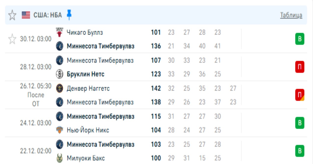 Статистика личных встреч Атланта Хокс — Миннесота Тимбервулвз