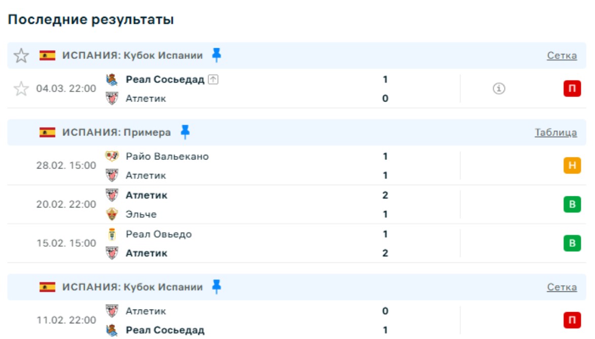 В среду «Атлетик» во второй раз проиграл со счетом 0:1 «Реал Сосьедад» и остался без финала Кубка. В чемпионате у команды Вальверде 5-матчевая беспроигрышная серия с тремя победами. В прошлом туре футболисты из Бильбао сыграли на выезде вничью с «Райо Вальекано» 1:1. В таблице «Атлетик» сейчас девятый.