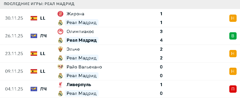 В пяти предыдущих матчах в разных турнирах «королевский клуб» сумел одержать лишь одну победу — над «Олимпиакосом». Также были поражение от «Ливерпуля» и ничьи с «Райо Вальекано», «Эльче» и «Жироной».