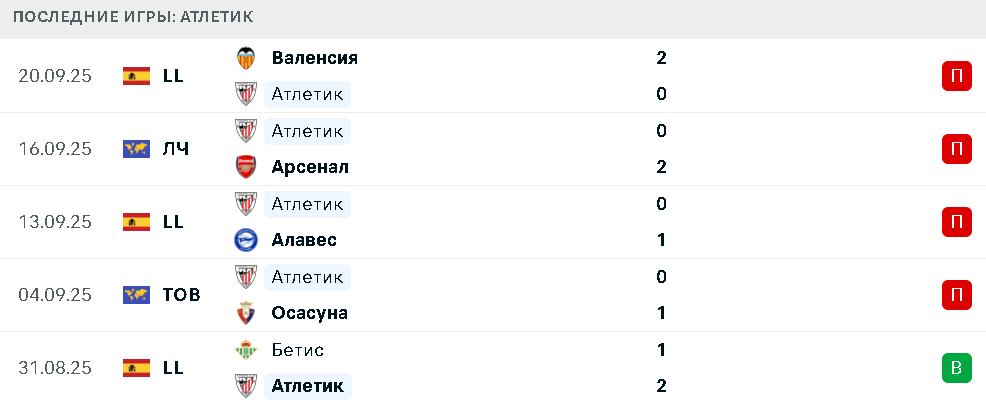 В пяти предыдущих матчах в разных турнирах команда из Бильбао одержала победу над Бетисом и потерпела поражения от Осасуны, Алавеса, Арсенала и Валенсии.