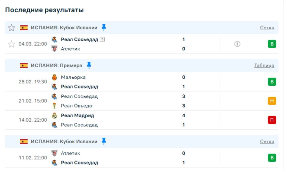 Последние игры Реал Сосьедад