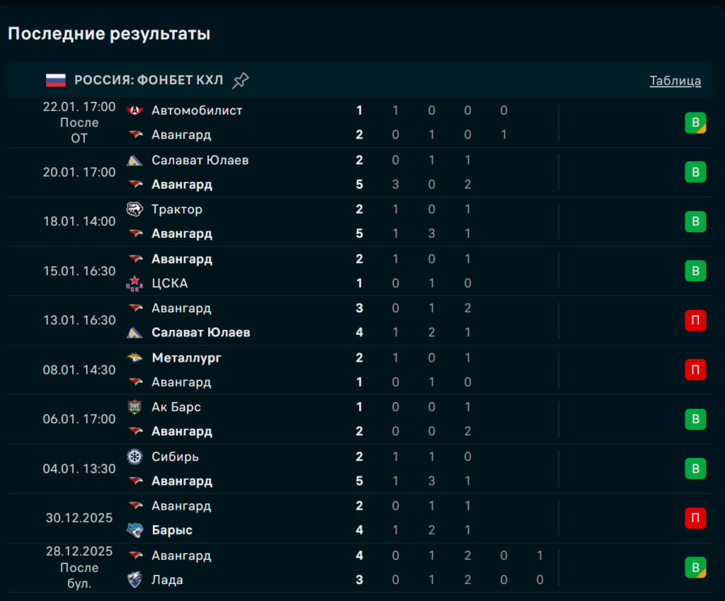 Победы над «Салаватом» (5:2) и «Трактором» (5:2) стали образцом тактического контроля: быстрые переходы, плотная оборона, идеальная реализация. Даже в проигрыше «Салавату» (3:4) «Авангард» забросил три шайбы — признак зрелости. Дома команда выиграла семь из девяти последних матчей, уступив лишь «ЦСКА» и «Ак Барсу».