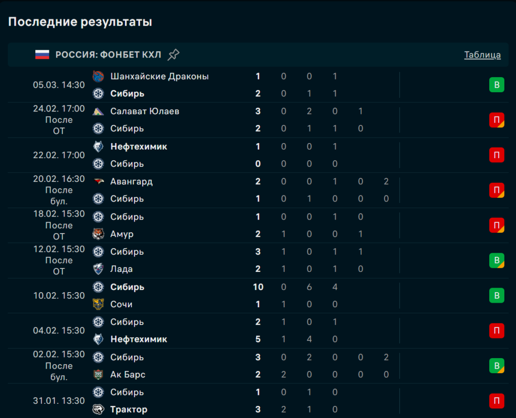 При этом дерби редко бывает «стерильным». «Сибирь» может упереться одним периодом, поймать пару контратак и держать счёт близким. Но для ставки Ф1(-1.5) важнее, что хозяева в таких играх чаще добавляют именно во второй половине матча, когда у соперника заканчиваются смены без ошибок.