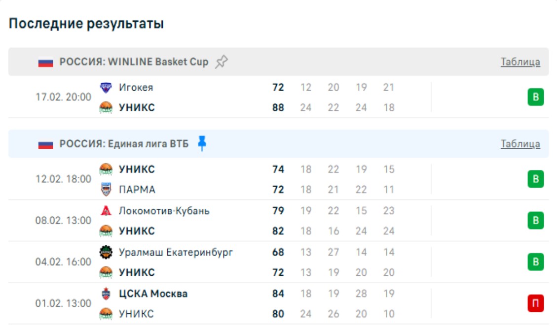 УНИКС ведет борьбу с ЦСКА за лидерство в чемпионате, но пока безуспешно — отстает на одну победу после поражения в очной встрече в Москве в начале февраля 80:84. Параллельно подопечные Перасовича играют в Winline Basket Cup, где во вторник взяли верх в гостях над боснийской «Игокеей» 82:77, возглавив турнирную таблицу в группе В.