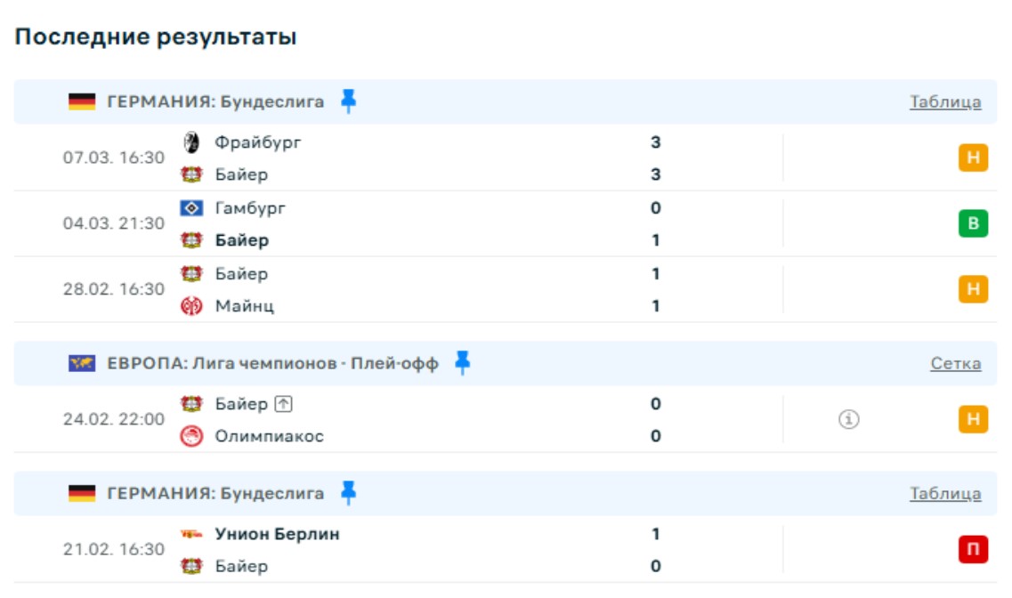 Последние игры Байера