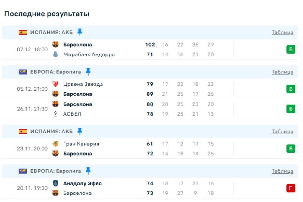 В чемпионате Испании каталонцы в прошлое воскресенье были сильнее клуба Морабанк Андорра 102:71. Это уже третья победа подряд в национальном первенстве, однако провальный старт пока не позволяет высоко подняться в таблице — Барселона занимает только седьмую строчку.