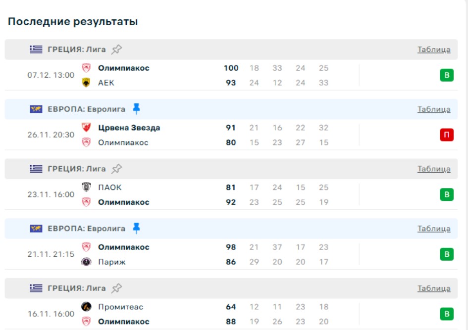Греки редко проигрывают в последнее время. У команды Георгиоса Барцокаса 2 неудачных матча во всех турнирах за 11 предыдущих встреч. Однако оба поражения в предыдущие недели у Олимпиакоса в Евролиге, причем всего за 3 тура.