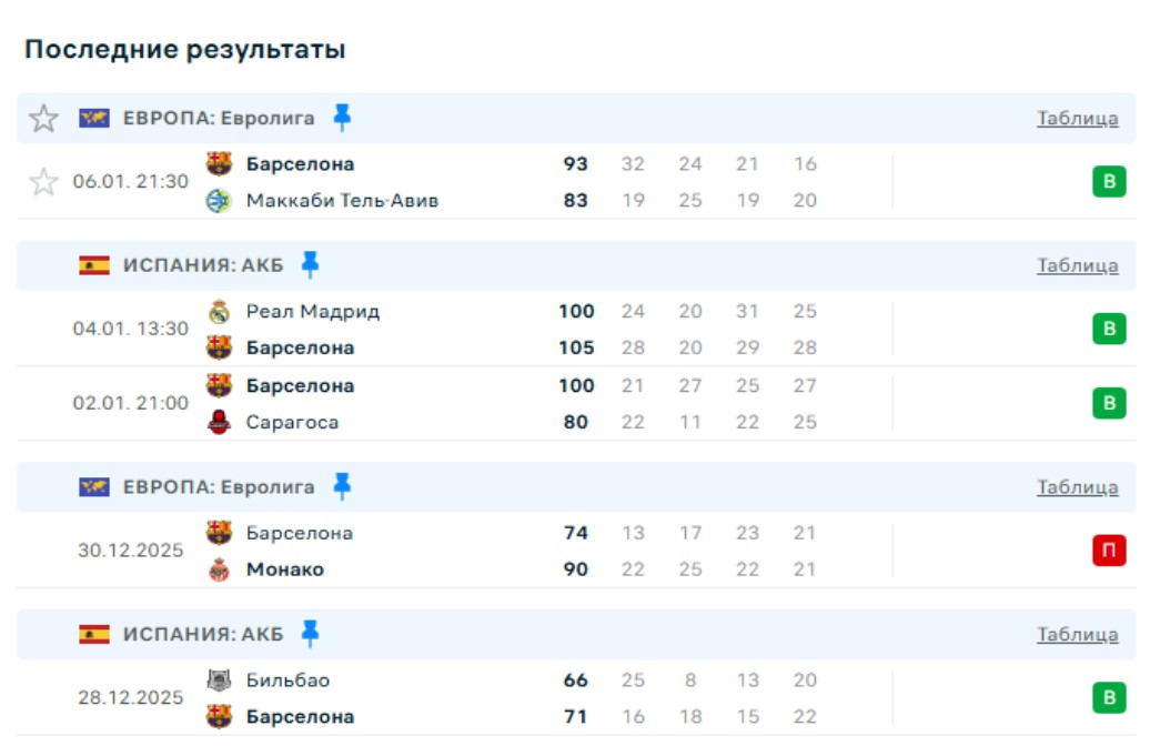 У сине-гранатовых 6 побед в предыдущих 8 турах, которые позволяют Барселоне сохранять место в плей-офф. Сейчас команда Хавьера Паскуаля расположилась на пятой позиции и только на 1 победу отстает от двух лидеров Евролиги — Хапоэля и Валенсии. Остальным командам, расположившимся выше в таблице, уступает только по дополнительным показателям.