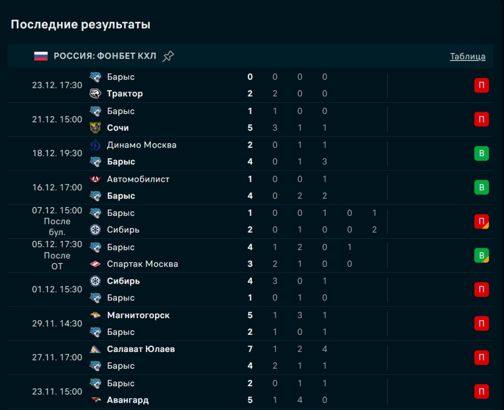 В трёх последних очных матчах в Астане — две победы «Барыса» и одна ничья, завершившаяся победой по буллитам. Однако оба матча сезона-2025 прошли в открытом стиле: 3:1 и 4:3. Средняя результативность — 5,5 шайбы за игру. История говорит в пользу хозяев, но текущая форма — в пользу гостей.