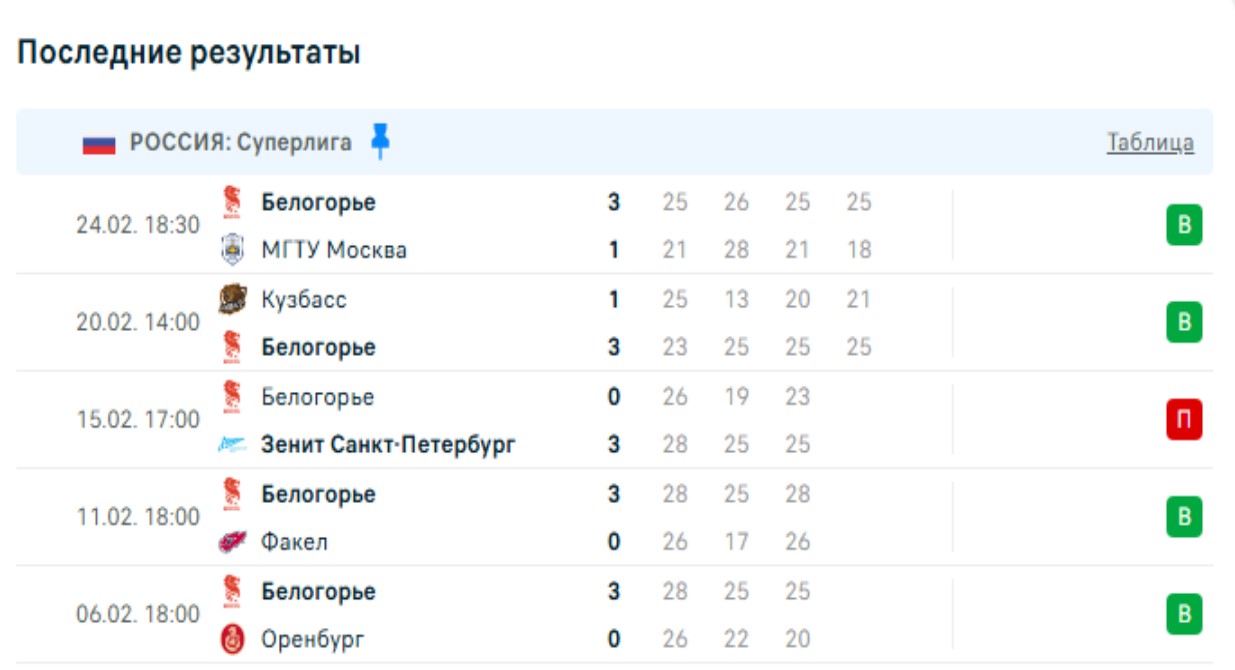 Коллектив из Ленинградской области в последних пяти турах победил трижды. Команда Александра Климкина допустила несколько досадных осечек, которые и позволили «Белогорью» выйти на чистое пятое место. Потерпела поражение в Нижнем Новгороде от «Горького» (1:3), на своей площадке проиграла на тай-брейке «Динамо-Урал». В прошлом туре удалось немного реабилитироваться, уверенно победив в гостях в трех партиях «Газпром-Югра».