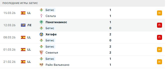 - Первый тайм у Бетиса в последних матчах часто заканчивается без голов