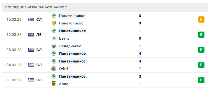 - Панатинаикос не проигрывал в последних 4 матчах и в трёх из четырёх не пропускал