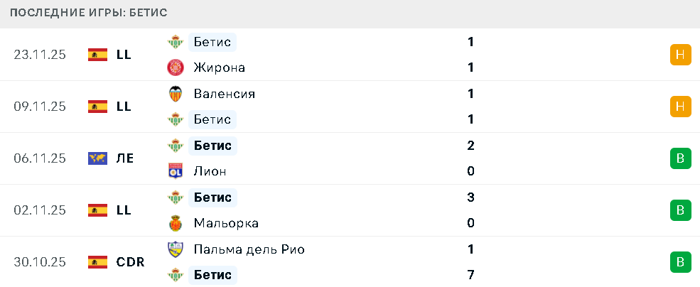 В пяти последних матчах «бетикос» не потерпели ни одного поражения, одержав победы над «Палма дель Рио», «Мальоркой» и «Лионом». После этого были две ничьи с «Валенсией» и «Жироной».