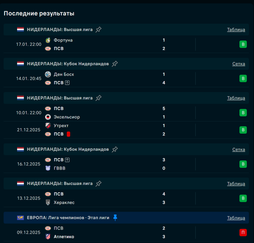 Голландцы доминируют в Эредивизи с 16-очковым отрывом, но в ЛЧ страдают от неравномерной игры. Победы над «Наполи» (6:2) и «Ливерпулем» (4:1) сочетаются с поражениями от «Юниона» (1:3) и «Атлетико» (2:3). Главная проблема — травма Рикардо Пепи, лишившая команду главного бомбардира. Без него атака теряет завершающий компонент, несмотря на высокий контроль мяча.
