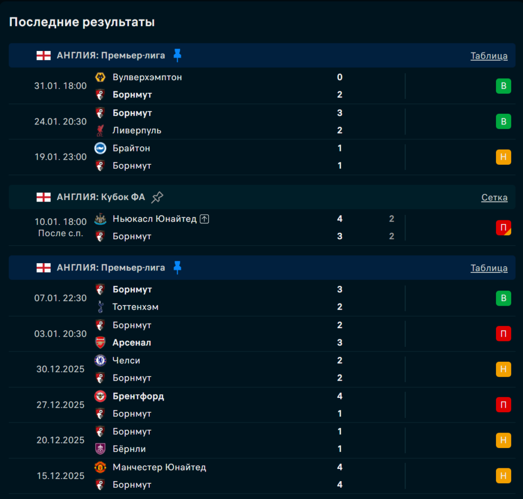 Последние игры Борнмут