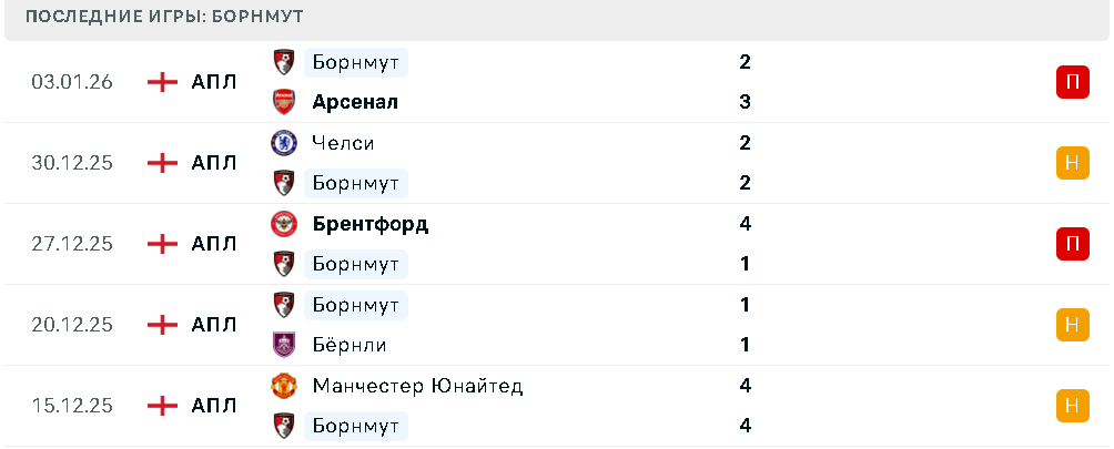 Последние игры Борнмута