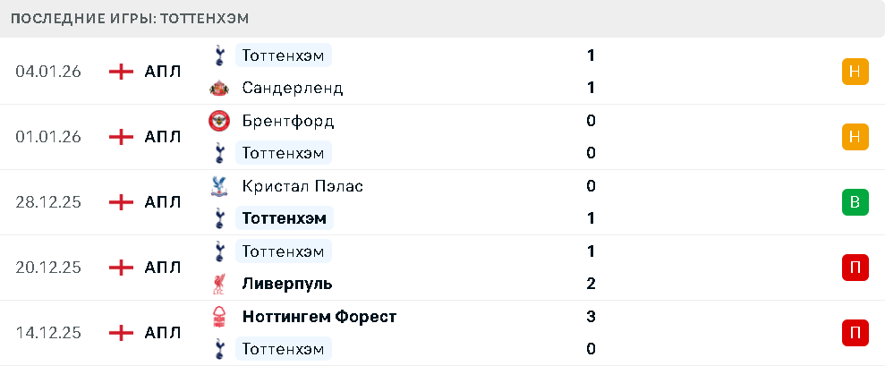 Последние игры Тоттенхэма