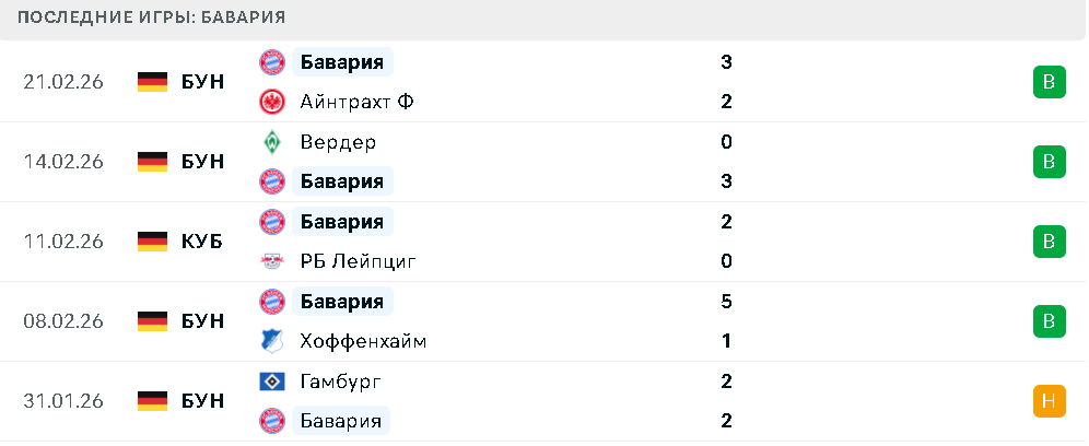 Мюнхенцы подходят к игре в статусе фаворита, но их форма в последние недели не выглядит безупречной. Сенсационное домашнее поражение от «Аугсбурга» и ничья с «Гамбургом» заставили усомниться в абсолютной доминации команды. Тем не менее, на выезде «Бавария» выступает уверенно: 8 побед и 2 ничьи. Средняя результативность гостей еще выше — 3,5 гола за матч. В целом в текущем розыгрыше Бундеслиги подопечные Венсана Компани демонстрируют чемпионский темп, однако в играх против прямых конкурентов все чаще делают ставку на прагматичный футбол.