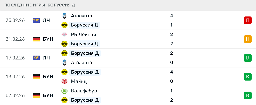 Последние игры Боруссии Дортмунд