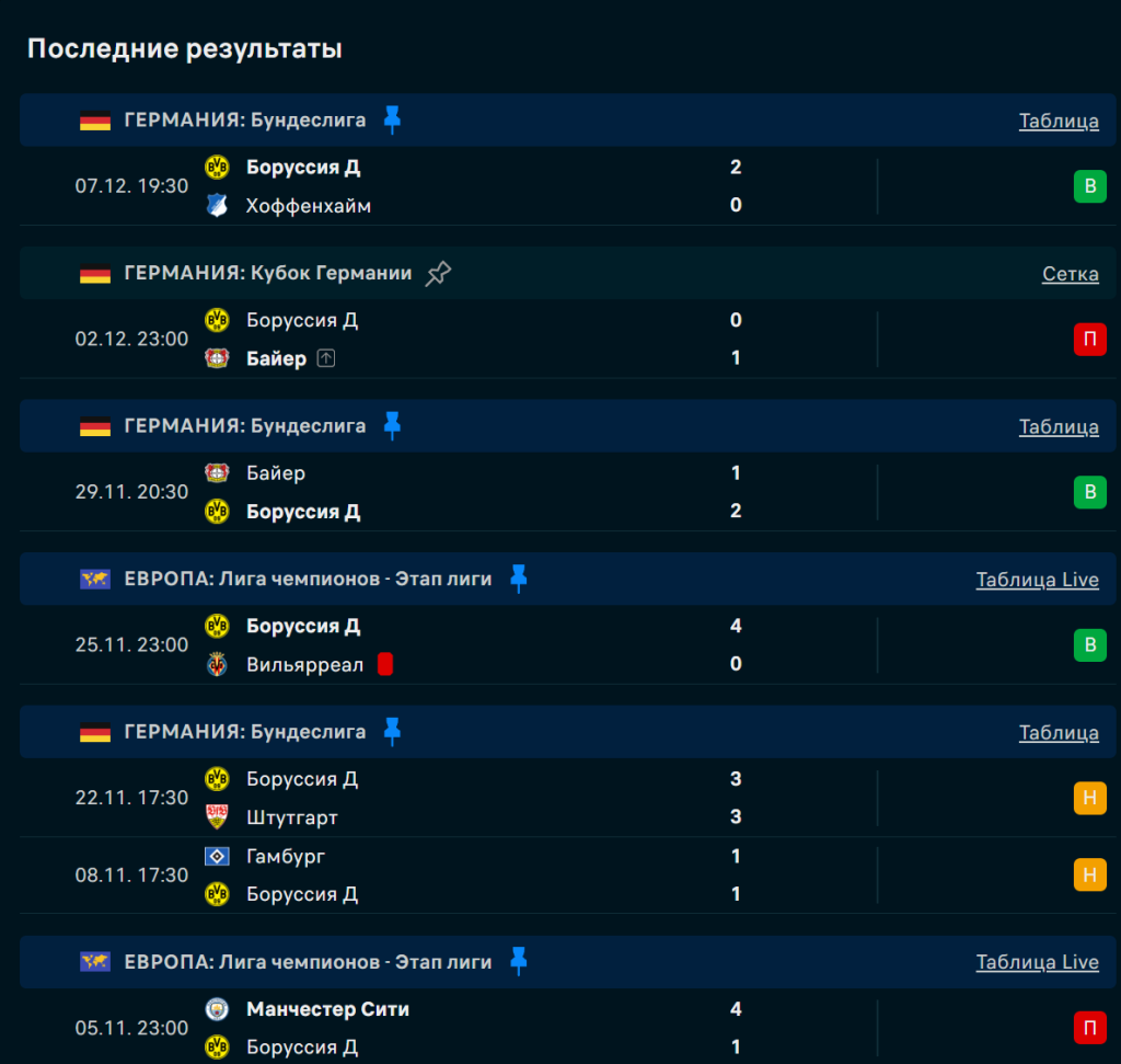 «Боруссия» — самая результативная команда текущего розыгрыша ЛЧ: средний тотал её матчей — 5,6 голов. Команда Нико Ковача выиграла 4:0 у «Вильярреала», 3:0 у «Тоттенхэма» и проиграла лишь «Ман Сити» (1:3). Дома дортмундцы не проигрывают в 20 матчах ЛЧ подряд. Атака работает стабильно: Гирасси, Брандт и Адейеми регулярно создают моменты. В Бундеслиге — 2 победы подряд после вылета из Кубка Германии.