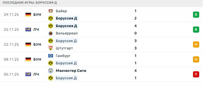 Последние игры Боруссии Дортмунд