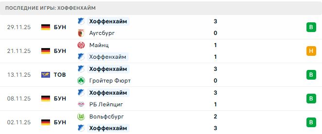 Гости прервали свою победную серию из четырех матчей, сыграв вничью с «Майнцем» (1:1). Команда Кристиана Ильцера демонстрирует проблемы в обороне — лишь одна игра на ноль в 11 турах чемпионата. При этом в атаке «Хоффенхайм» выглядит опасно, занимая 5-е место в турнирной таблице.