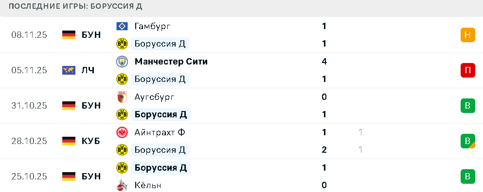22 ноября 2025 года в Дортмунде на стадионе «Сигнал Идуна Парк» пройдет матч 11-го тура Бундеслиги, в котором местная «Боруссия» примет «Штутгарт». Начало запланировано на 17:30 по мск. 24-bet.ru предлагает прогноз на матч «Боруссия» Дортмунд — «Штутгарт» и приводит важную статистику.