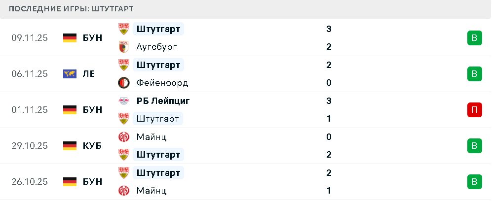 - Штутгарт одержал 7 побед в 10 последних матчах.