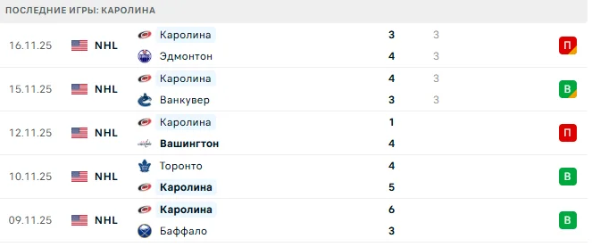 После впечатляющей стартовой серии ноября команда из Роли столкнулась с проблемами. Текущий спад начался с домашнего матча против «Вашингтона», и хотя подопечные Бриндамора продолжают бороться за очки, большинство recent встреч требуют дополнительного времени. Фактически «ураганы» неудачно провели домашнюю серию и начинают выездной тур в неоптимальном состоянии.