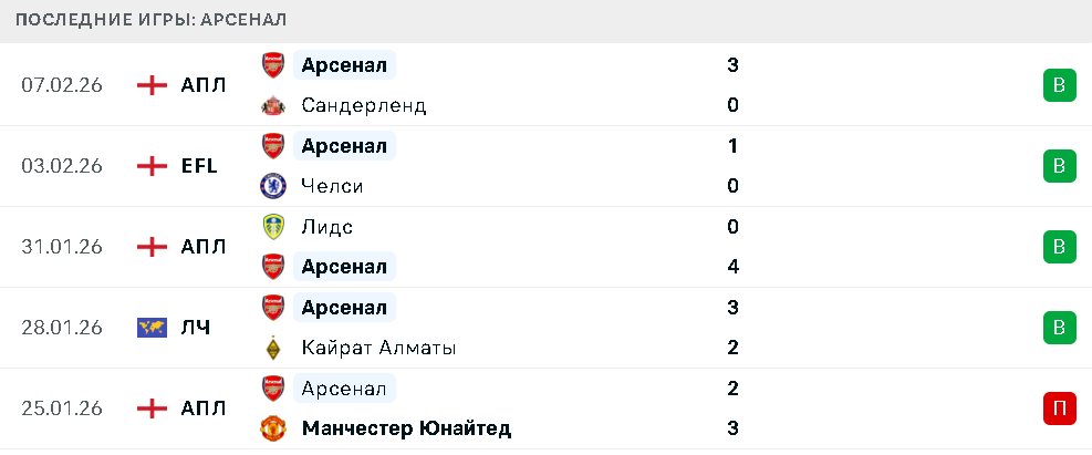 После болезненного поражения от «Манчестер Юнайтед» команда Артеты стабильно радовала болельщиков победами над «Кайратом», «Лидсом», «Челси» и «Сандерлендом», подтверждая статус фаворита большинства матчей.
