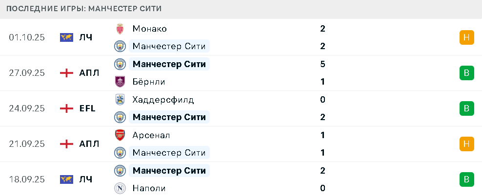 Последние игры Манчестер Сити
